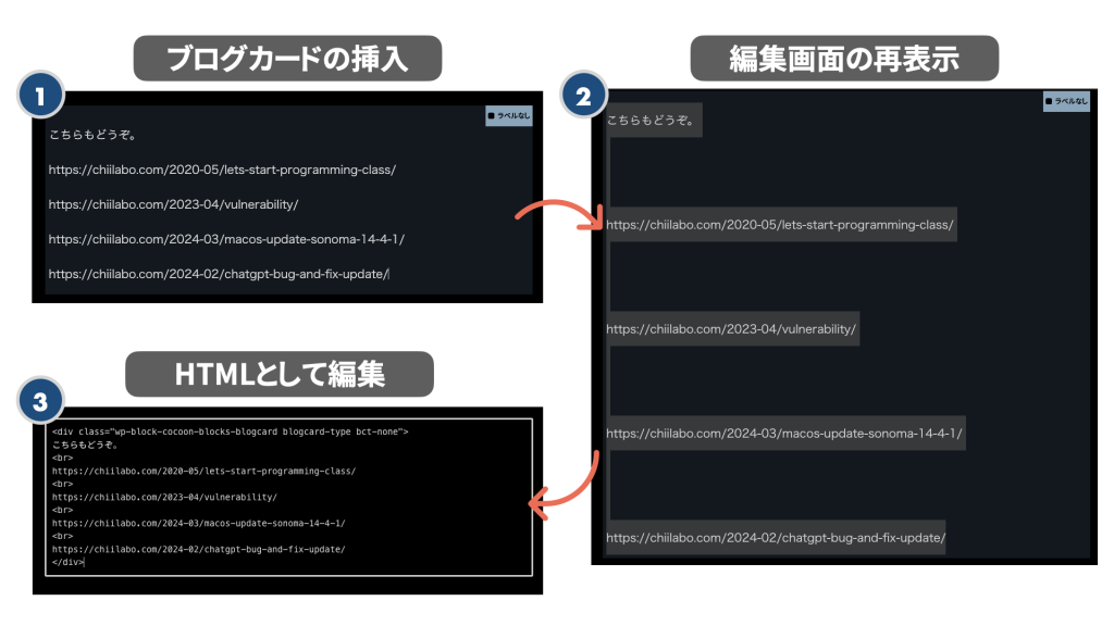 WordPressのテーマ「Cocoon」(Ver. 2.7.2.3)を使っているサイトで、WordPress6.5にアップデートしたらブログカード内のURLに開業が追加されるようになった。